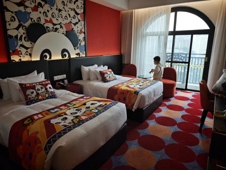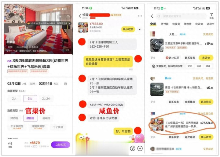 我一年抠抠嗖嗖的省钱,顶不住长隆玩一次,还不王人是为了女儿欣喜。寒假时间这的“熊猫货仓”是淡季的2-3倍,过年前后更是死贵!此次我三大一小全家出游,要定两晚的酷酷双床房,包含两顿早餐+一顿晚餐,以及3大的三园套票+大马戏门票,官方小法度报价8679元。