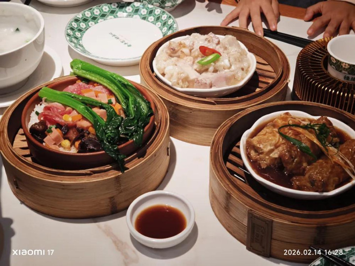 临了广州东站自带商圈,名叫东方宝泰,内部啥餐厅王人有,比如陶陶居、大榕树下和禄运茶居,咱们就近去禄运茶居疏忽吃吃,吃完上火车倒头就睡了。
