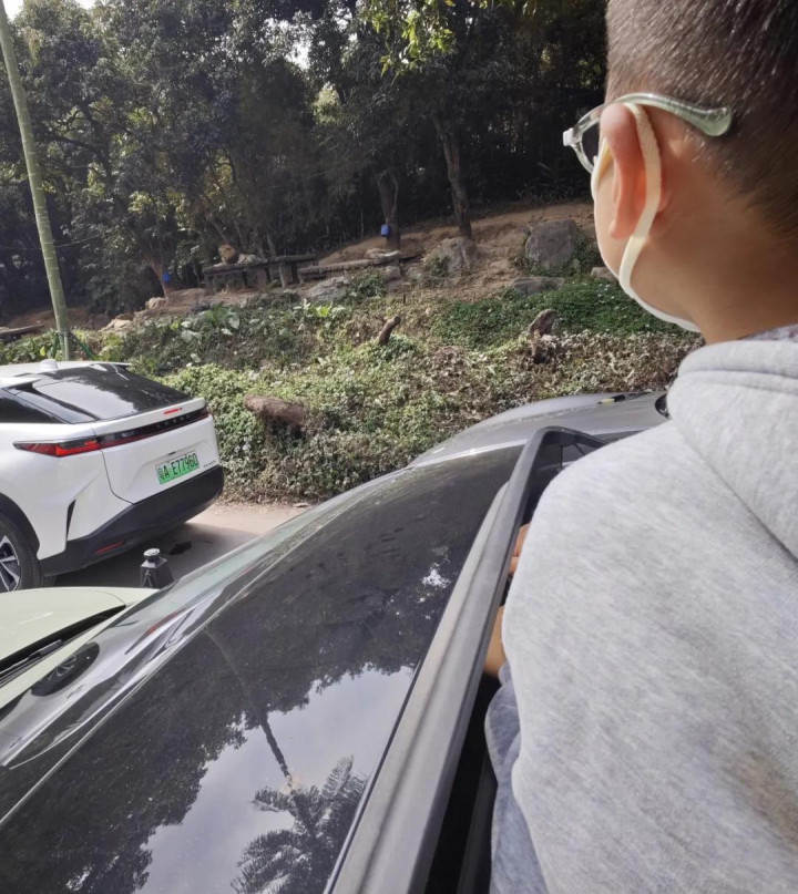 我索性提前在去哪儿租了个新出的纯电SUV,横跨三天才320元,还带可开启的天窗,女儿透过天窗看得清洁白白,也无谓缅思安全,进园后平均几码龟速前行,能开天窗的车完全站着小一又友。