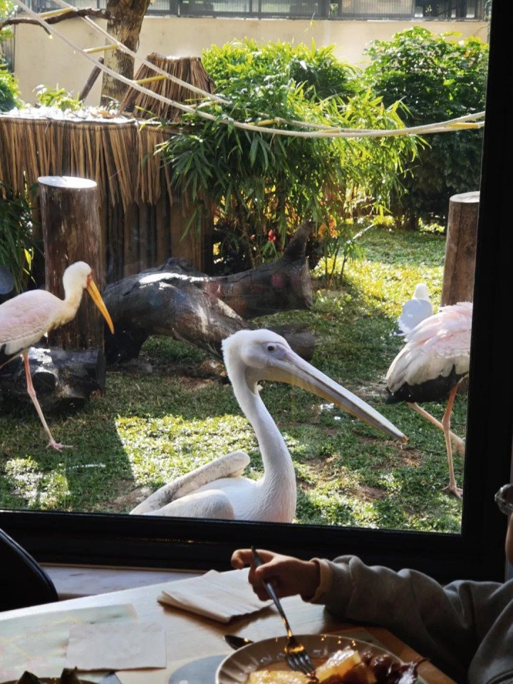 第二天早餐那才叫选藏,成东谈主158元、儿童98元,还以为是雅致粤式早茶圭臬,其实屁咧。不外在这吃早饭不错看到窗外的动物,但窗边位置很少,要碰命运或蹲守,这才是情怀价值所在。