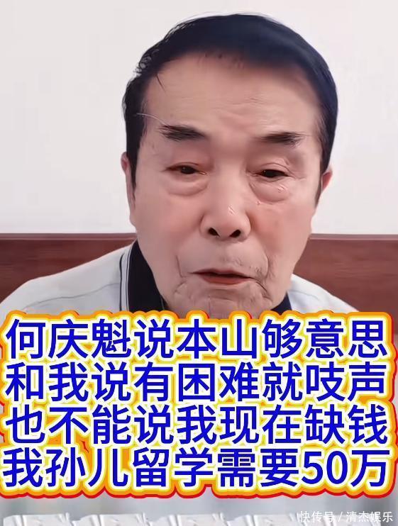 何庆魁最近的直播里,把孙子留学的事番来覆去说:“大孙子20多岁,念念出洋留学得50万,我80岁了,能挣就给,挣不来就攒。”话里话外没提赵本山,但每一个字王人在示意——“你看,我没看法了,你动作老伴计,是不是该出点力?”