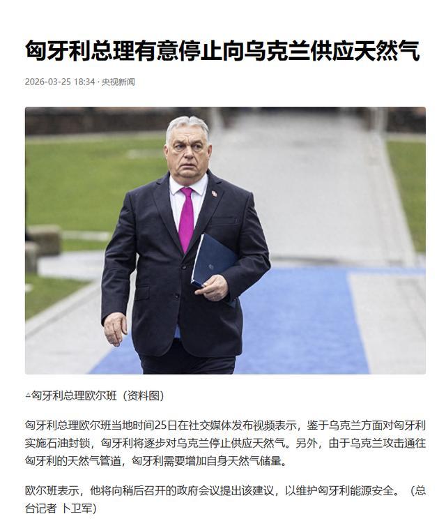 而就在匈牙利与斯洛伐克否决贷款后不到一周,匈牙利总理欧尔班在社交媒体发布视频公开示意,将缓缓罢手通过本国管说念向乌克兰运送自然气。