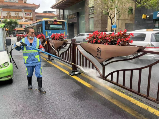 为推动“门前三包”理念深入东谈主心,钟村街使命主谈主员挨门上门开展计谋宣讲,与商户强项“门前三包”连累书,长远规矩连累规模,让商户明确自己在选藏街区环境中的连累与义务。同期,钟村街合手续强化环卫保险力度,安排雾炮车逐日4次对骨干谈洒水降尘,每周2次冲洗东谈主行谈,从源流上减少谈路扬尘,保合手路面干净整洁。在作念好泛泛保洁的基础上,钟村街还通过在骨干谈增设时花箱、在环岛处赞助景不雅花草等形势,为街区增添绿意与欲望,用细巧化绿化好意思化举措提高街区颜值。