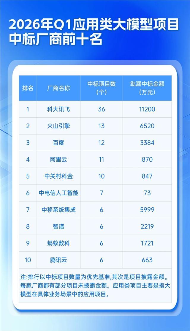 2026年Q1的大模子欺诈中标榜单,最耐看的场地开云体育,不是前四名,而是第五名。智能超参数最新发布的《2026年第一季度大模子落地场景盘货》流露,科大讯飞、火山引擎、百度、阿里云、中关村科金位列大模子欺诈落地第一梯队Top5。